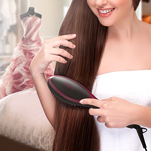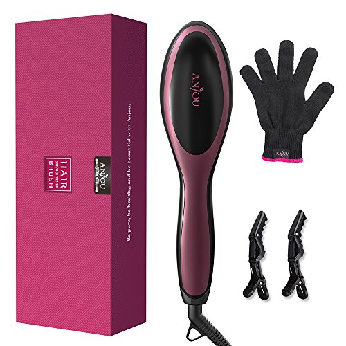 Anjou Hair Straightener Brush with Anion Hair Care Electric Ceramic Heating Straightening Brush