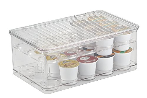 mDesign Stackable K-Cups Coffee Pod Holder with Lid for Kitchen Pantry, Countertops - 2-Tier, Holds 29 Capsules, Clear