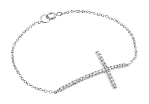 -. Title : Rhodium Plated Sterling Silver High Polish CZ Large Sideways Cross Bracelet