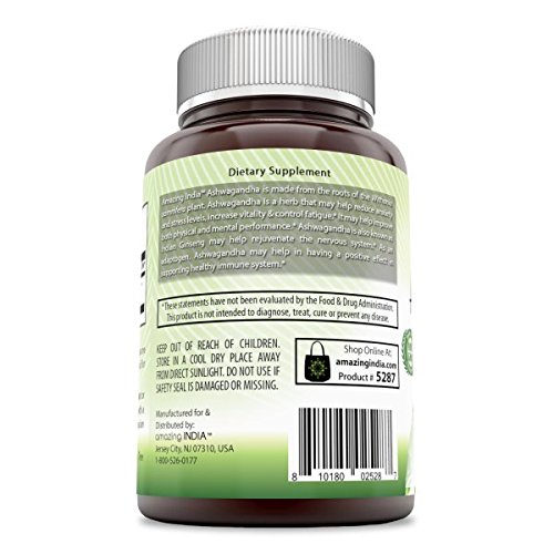 Amazing India Ashwagandha 500 Mg 120 Veg Capsules * Promotes healthy Immunity Supports Stress Management and Promotes Vitality *