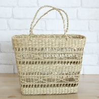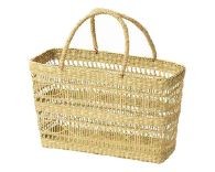 | 素材 | メイズ(とうもろこしの皮です。やわらかく、柔軟性があるのが特徴です。洋服を引っ掛けてしまい、傷つける心配もありません。)持ち手と縁の部分は合皮です。 |