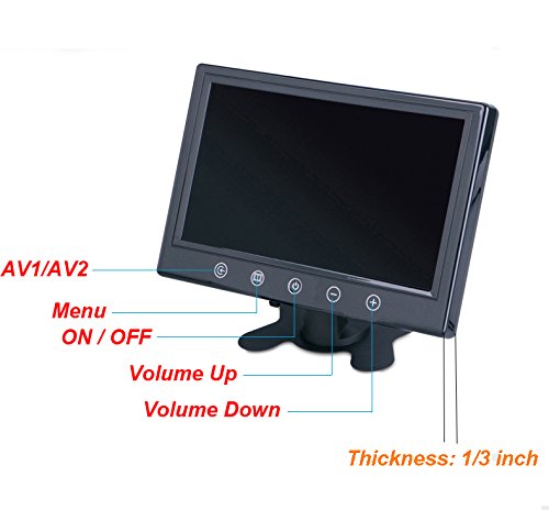- Feature : 7 inch TFT LCD Color screen with high resolution: 800 x 480 pixels and automatic switch rear display function. / The leg stand forks by which the unit is attached to your car's armrest can be adjusted to fit. Supports car DVD, VCR, camera, GPS and other video equipment. / Support 2 AV input, one can be connected to DVD / VCD / GPS / TV / CMMB in front of the camera can also be connected, the other connected to the back of the camera and reversing radar. / With adjustable screen, built-in speaker, TR transmitter, touch button and remote control function for a easy operation. / Widely used in buses, commercial vehicles, container trucks, trucks, engineering vehicles, fire trucks, ships and other modes of transport.