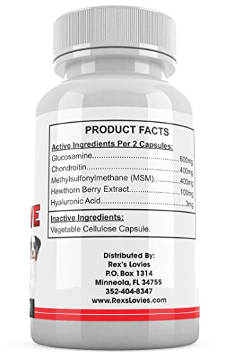 🐶 Is your dog suffering and in pain? We can help. Our product combines Glucosamine with Chondroitin which has a greater beneficial effect on your dog's joints. MSM improves joint flexibility and reduces pain and inflammation and Hyaluronic Acid lubricates joints.