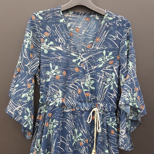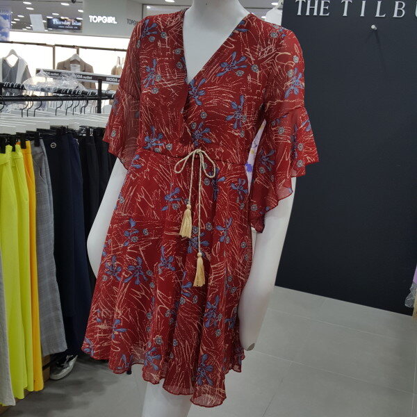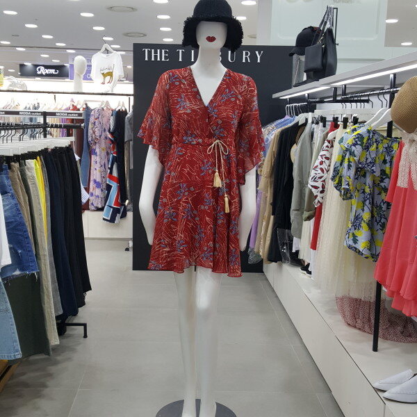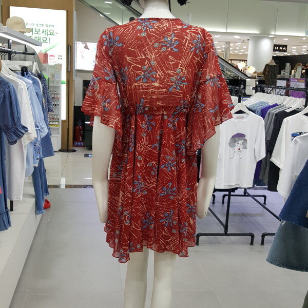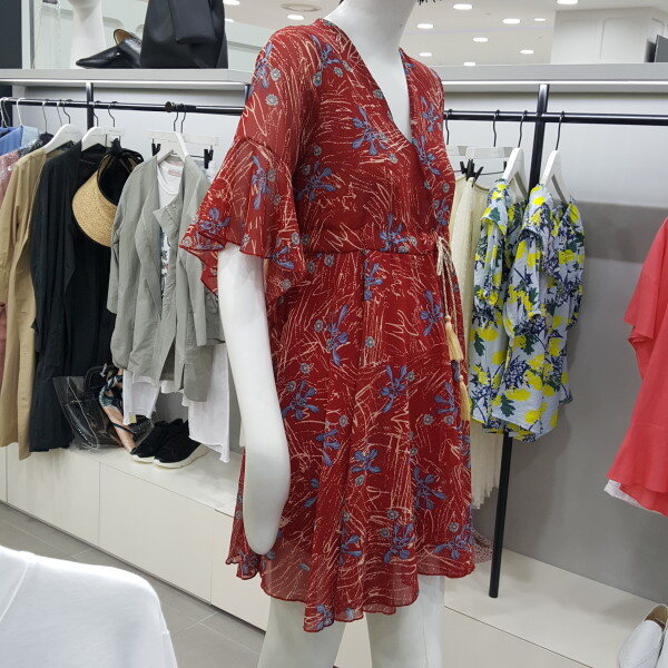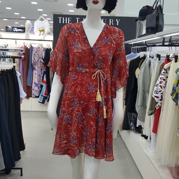 하늘하늘 와이드한 프릴소매단과 골드태슬장식이 페미니함을 더욱 업시켜드리는 러블리 쉬폰원피스입니다 Y넥크라인으로 여성스러운 페이스라인을 만들어 드립니다프리사이즈 총길이83가슴둘레90어깨넓이35