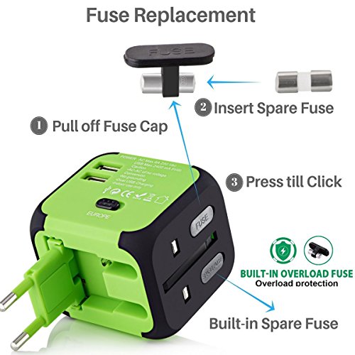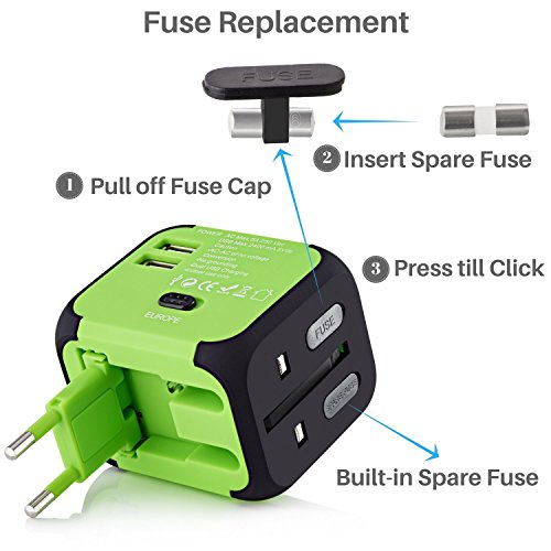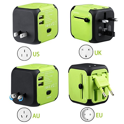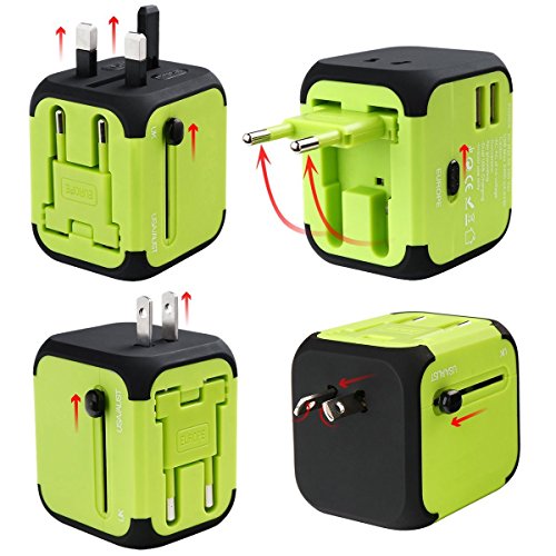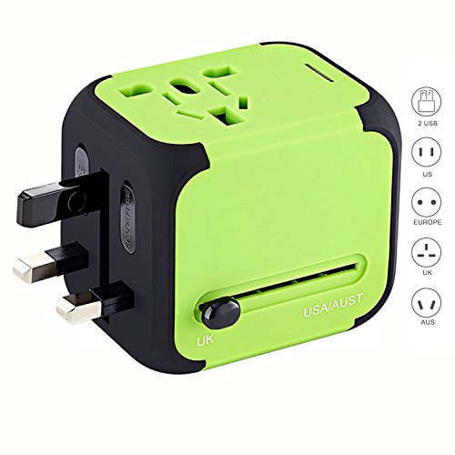 Specification: Size:75mm x 65mm x 38mm. Material:Import PC flame retardant Male Plug:UK/AUS/EUR/USA Input:100-240VAC Output:100-240VAC 6A max USB Output:DC5V 2.5A Certification: CE,ROHS,FCC,IC Feature: 1. With 4 Plug Switches, 2 USB Ports and Car Charger, Charge your iPad, iPhone, iPod, HTC, Blackberry, MP3 Players, Digital Cameras,for over 150 countries. 2. LED light and the LED lights up once it is plugged in the outlet. 3.Power and Charge 2-in-1 Dual USB adapter allows simultaneous use of AC 4.power and 4.USB charge. Plug small appliances to AC power port (Total power rating less than 1500W) ,The dual USB ports support maximum output of 2.5A. 5.Car charger Simply plug charger into your car's cigarette lighter, and it's ready to start charge one or two portable devices at a time. 6.Two Slide-out Plug Release Button The easy to use slide-out plug release button allows you to conveniently change to UK,US and AU plug when necessary. NOTE: 1. This charger adapter plug converts the power outlet only; it does NOT convert electrical output current and voltage, You need to check the voltage rating on your hair dryer or curler/straightener to see if it handles 100-240 volts. 2.Please make sure AC appliance power less than 1500w in total. 3.When connected to a 12V car adapter, the AC power port of universal socket cann't be used. but as car charger, you can charge phone and ipad by Dual USB port 4.Push the slide-out plug release button to the end to make sure the plug will not draw back 0