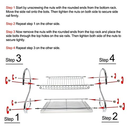-. Feature : ALL-IN-ONE VERSATILE ORGANIZER - Can store, forks, spoons, plate, chopsticks, mug , glass, bowls and other dishes, lower flat surface accommodates glasses or mugs. Removable draining tray allows easy removal of excess water / EASY ASSEMBLY & CLEANING - The special design and premium stainless steel material will be easy to clean, all component parts included easy to assemble with an easy-to-follow instruction manual for hassle-free assembly / HEAVY DUTY - Constructed with heavy duty and rust-resistant chromed wire for stability and durability; Stainless steel material, polishing and welding process, prevent from rusting; Non-marring silicone coated feet protectors / DIMENSION - 16.5 x 9.5 x 15.5inch (W x L x H ), includes a plastic pan to catch the excess water, as well as a side compartment for all utensils and cutlery / SATISFACTION GUARANTEE - If you are not completely satisfied with your purchase, we will do whatever it takes to make sure you are happy! 100% satisfaction or your money back