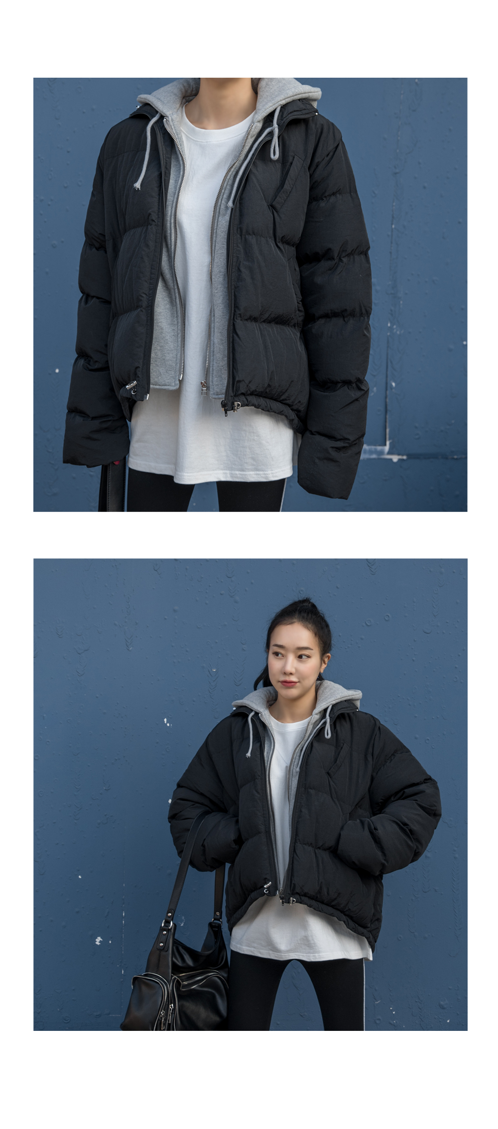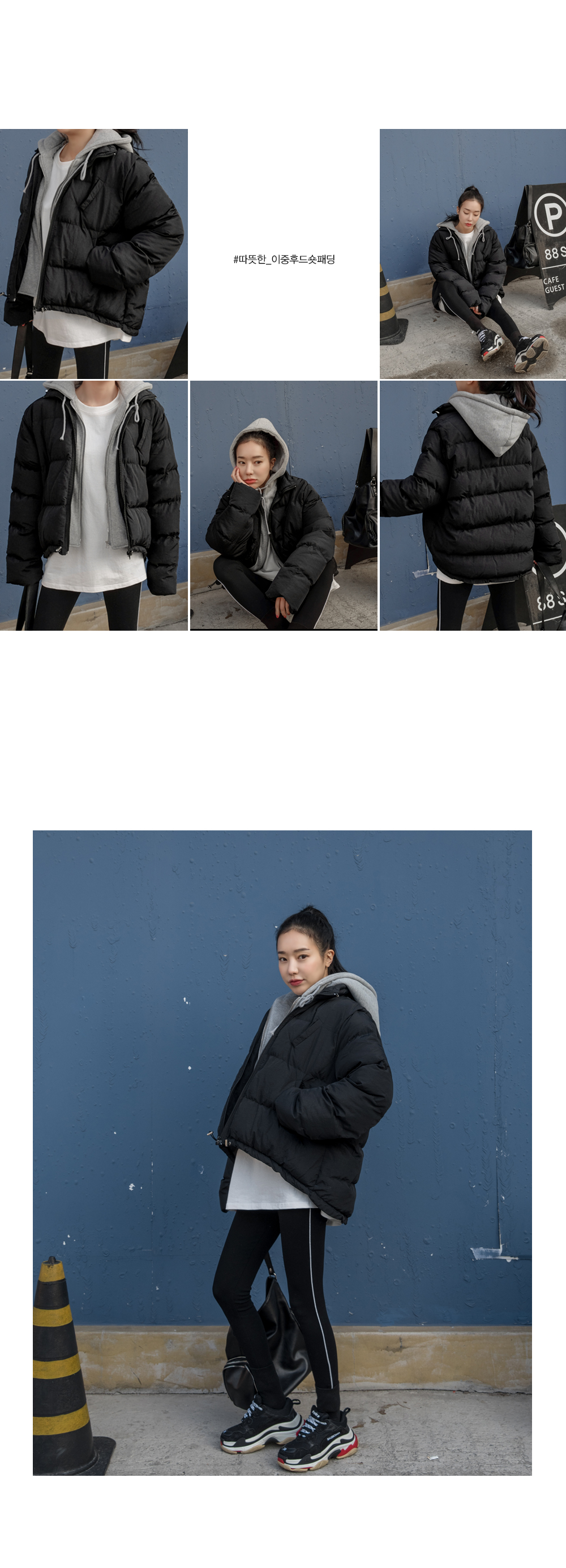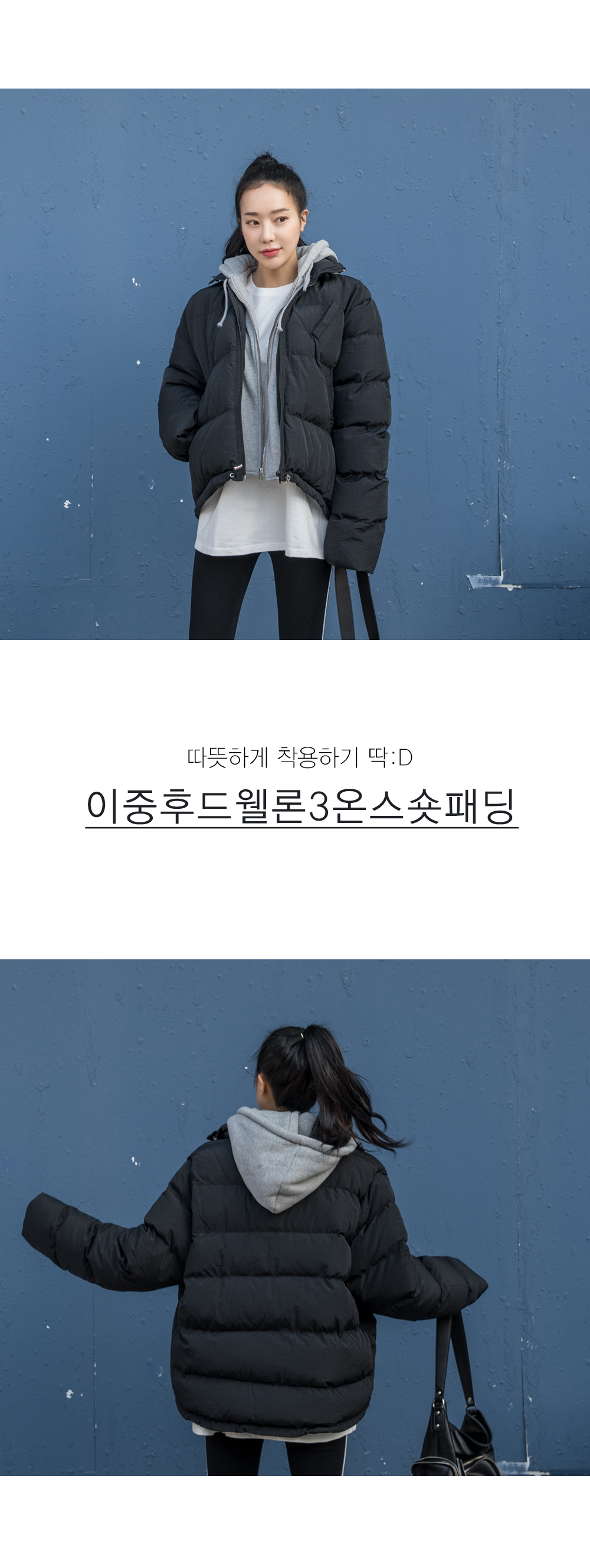 이중 후드와 웰론 소재로 따뜻하고 캐주얼하게