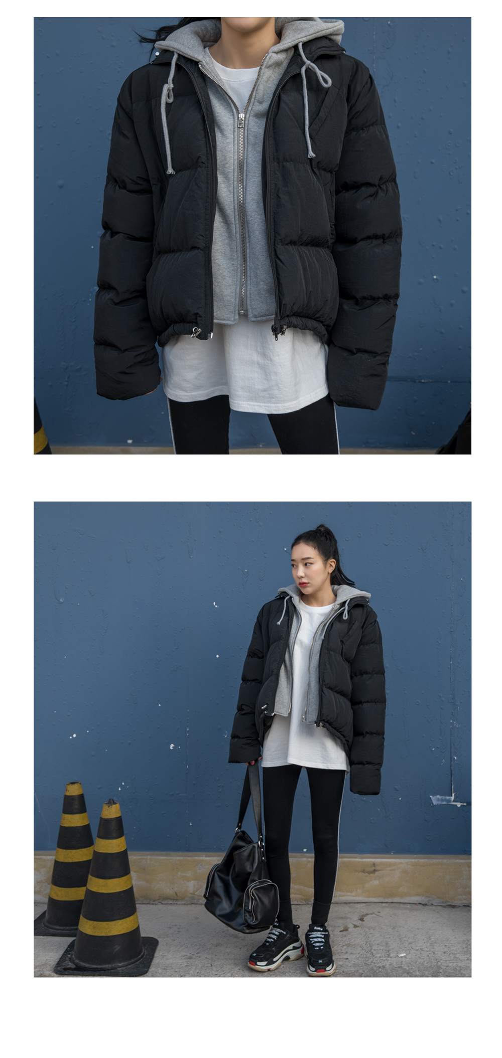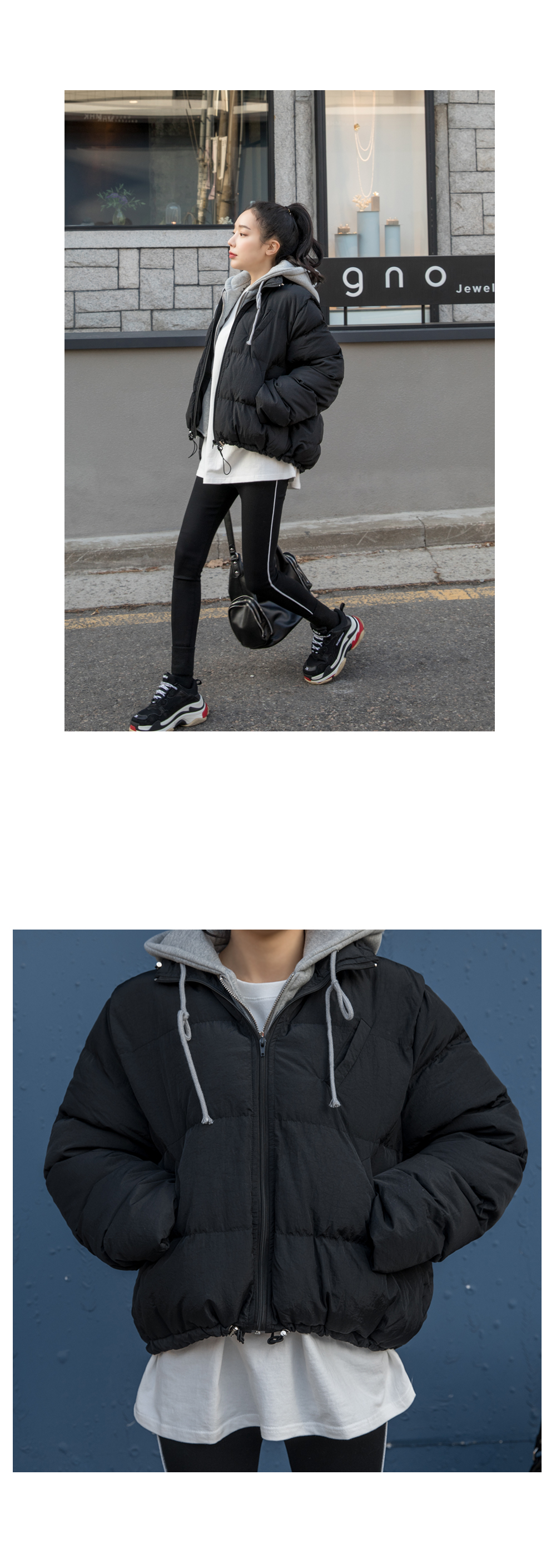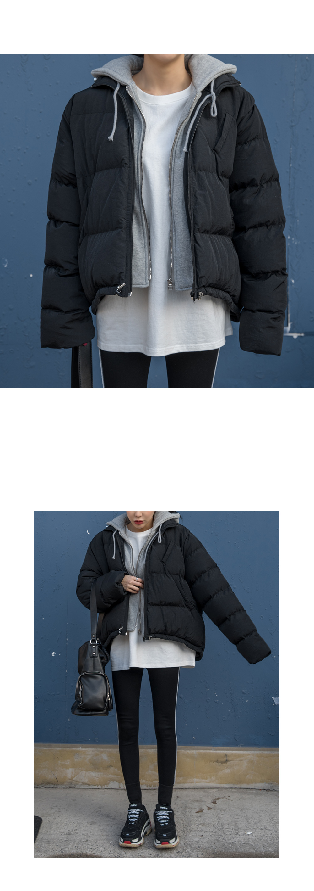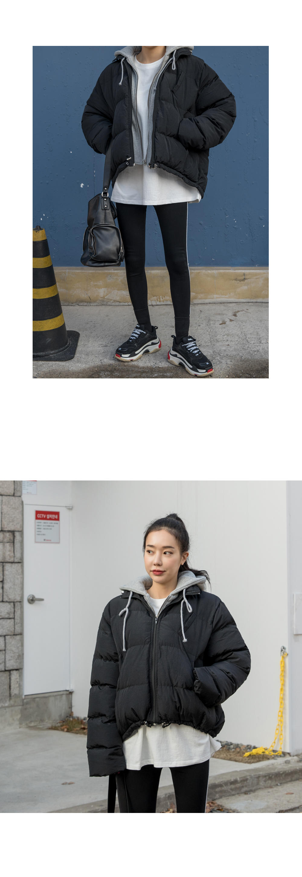 이중 후드와 웰론 소재로 따뜻하고 캐주얼하게