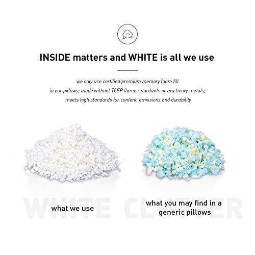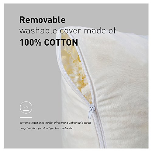 -. Feature : MOLDABLE SHREDDED MEMORY FOAM - provides the plushness, breath-ability and shape-ability of down and the support of memory foam / EXTRA 20% FILL - add or remove foam to adjust to your comfort; perfect custom-made pillow each time for all sleep positions / 100% COTTON REMOVABLE COVER - extra breathable and greater ventilation; gives you a unbeatable clean, crisp feel that you don't get from polyester / INSIDE MATTERS - our certified memory foam is made without TCEP flame retardants or any heavy metals; meets high standards for content, emissions and durability / TIPS - Before your first use, put the pillow in dryer for 5min to speed up the fluff process right out of vacuum package; the pillow case is totally removable and washable, making accidental messes worry-free