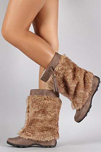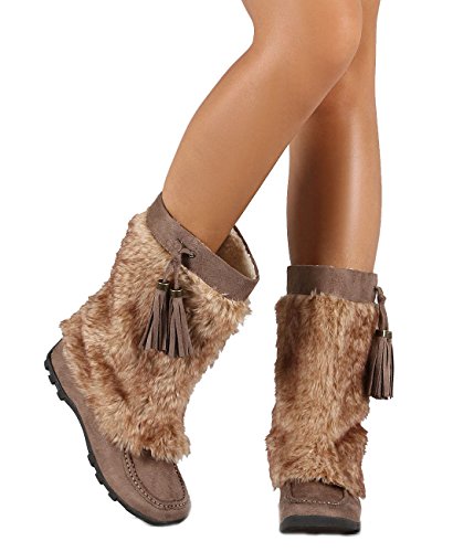 Binding : Apparel Product Description These cozy mid calf boots feature a faux suede upper with soft faux fur shaft, tassel detail at collar, stitching accents, and low hidden heel. Finished with cushioned insole, faux shearling interior lining, and easy pull on construction. 0