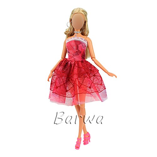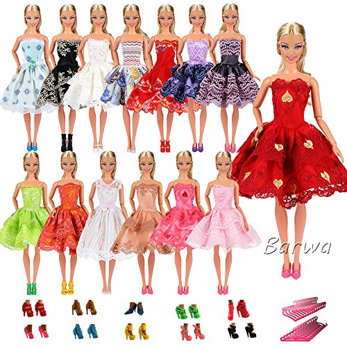Barwa 5 PCS Fashion Mini Short Party Dresses Clothes + 5 Shoes + 5 Hanger for Barbie Doll GiftPackage Included:5 pcs dresses for barbie doll