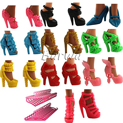 Package included: 5 pcs dresses with 5 pairs shoes and 5 pcs hangers for barbie.