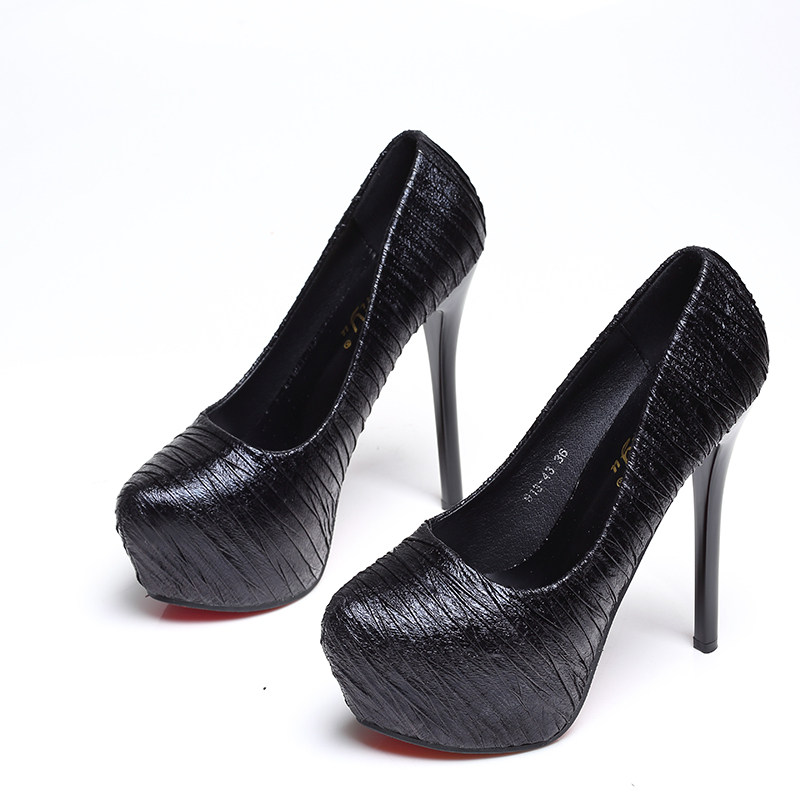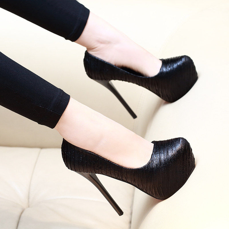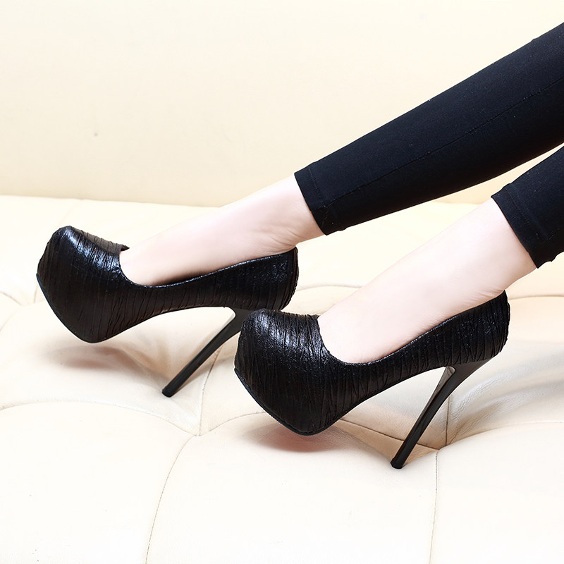 超高跟鞋12cm夜店防水台性感细跟职业黑色圆头情趣少女单鞋女