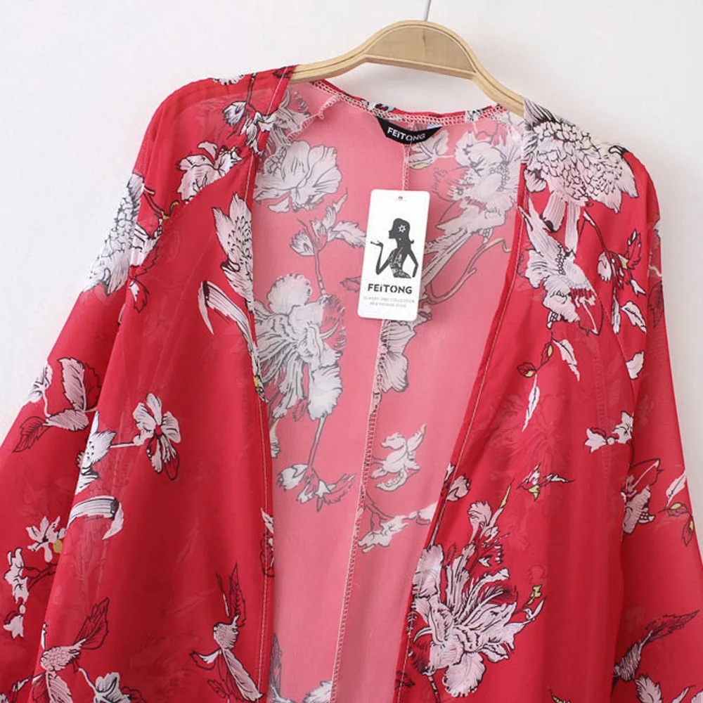 Chiffon kimono cardigan:kimono cardigan floral