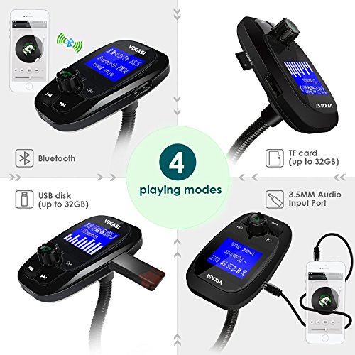 VIKASI Bluetooth FM Transmitter,Wireless Radio In-Car Transmitter Adapter Car Kit with 1.44'' Display and 2 USB Car Charger, Car MP3 Player Support Micro SD Card AUX Input(Black)