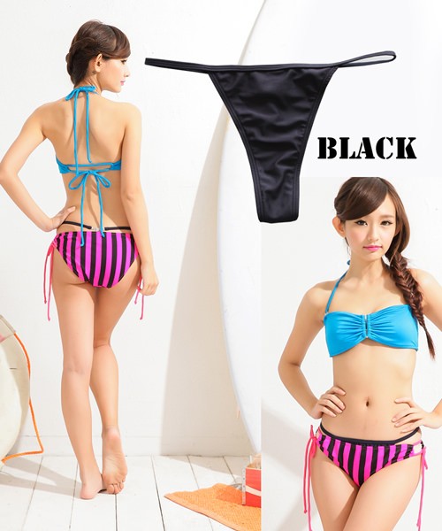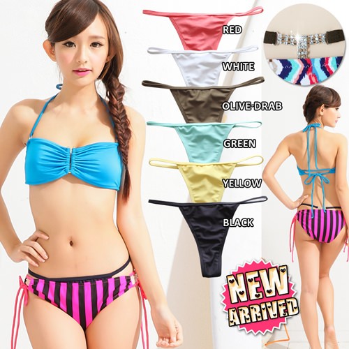メール便送料無料 ラインストーン付き水着生地Tバックショーツ【6色】