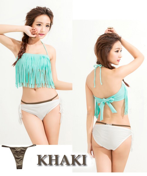 レイヤードスタイルに大活躍の水着素材のTバックショーツはバックにキラキラのラインストーン付き。