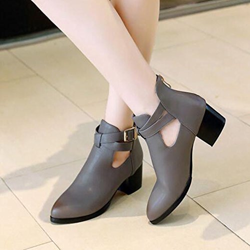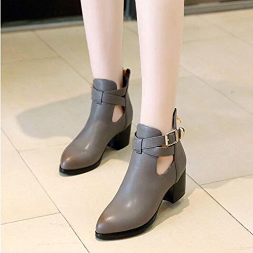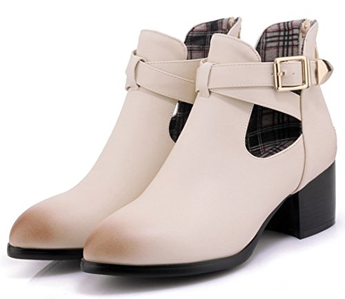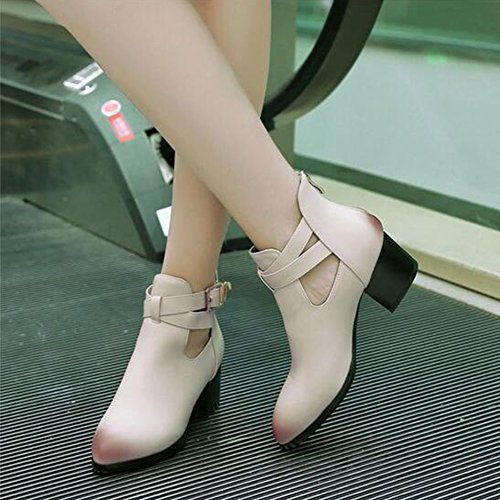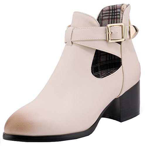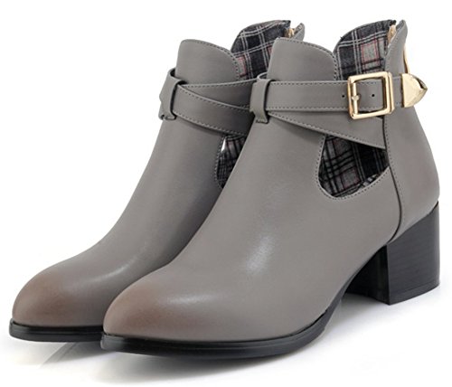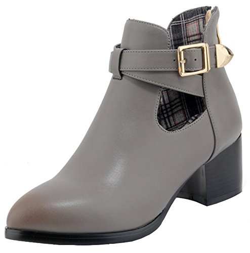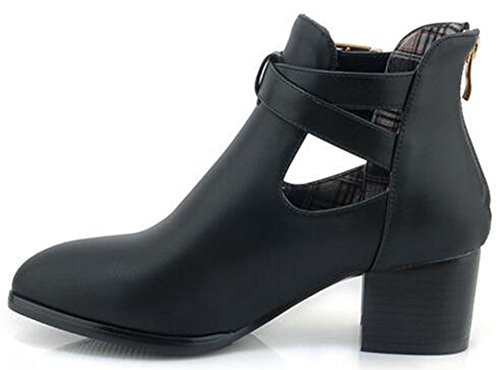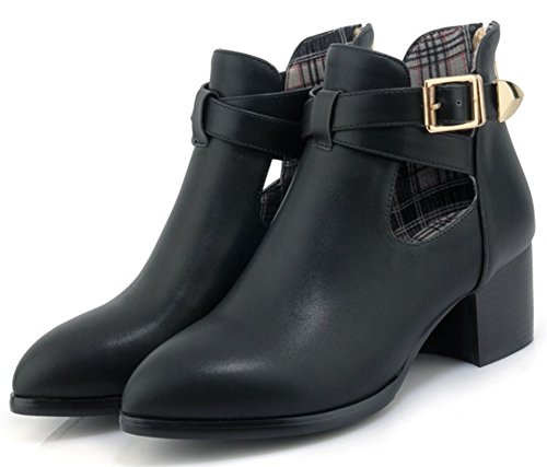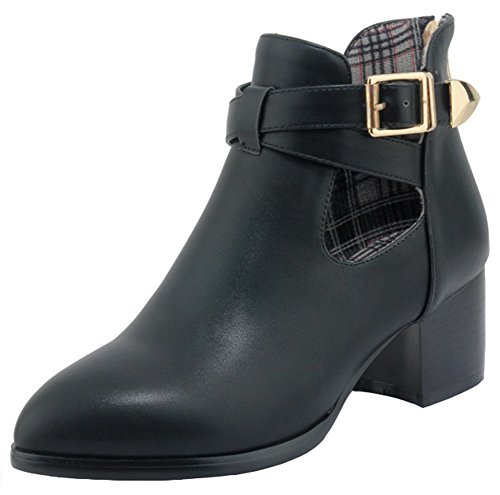 (Mofri)/Women's/Boots/DIRECT FROM USA/Mofri Women's Retro Buckle Cross Strap Cut Out Block Medium Heel Pointed Toe Short Ankle Boots ...