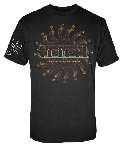 Product DescriptionWarped wraiths spin in agony on this black, 100% cotton t-shirt inspired by Tool's '10,000 Days'. TOOL LOS ANGELES CALIFORNIA is printed on the right sleeve in white.0