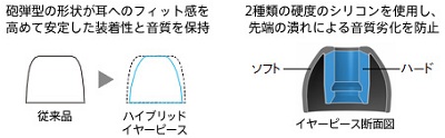 ■装着感と音質を向上させるハイブリッドイヤーピース