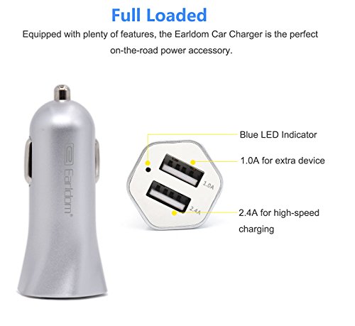 Dual Smat Port Design: Dual USB has a total output of 3.4A, The maximum charging speed for port 1 is up to 2.4A and port 2 is up to 1.0A. lets you charge any two USB devices at simultaneously, Automatically detects your devices to deliver optimum charging speed.