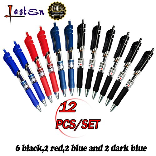-. Feature : 4 LASTING COLORS-This Premium office gel ink pen (12pcs/set) has 4 colors, 6 black ones, 2 red ones , 2 blue ones and 2 dark blue ones. The signature gel ink pens has 50 years of sales history and sell $1.4 billion gel pens office a year.I think you will make the right choice to order / PREMIUM MATERIAL--The smooth gel Ink roller Ball Pen dries so fast with no smears and no globs,no problems with fading, smudging, bleed-through.Imported Germany ink office writing pens are best for stationery and office supplies.No matter you are taking test or on meeting, the gel pens will greatly improve your efficiency on study and work. / CONVENIENT USAGES-Different colors of this gel pens art ink pastel pens can help you mark out the different parts, so convenient for your reference and memory. Retractable perfect gel pens can be very convenient to press down the cap and writing gel pens can avoid to be damaged Never worry that you cannot find your caps anymore. What's more, you can check office gel ink pen capacity from transparent pen shell / SAFE & NON TOXIC-This smooth writing roller ball bold pens are non-toxic and no any peculiar smell when you are using. The bold point pens handle is in rubber, which ensures that you can use for a long time without feeling tired or rubbing your hand. Click pen is suitable for daily use .This neutral pens are very popular with students, workers and more. / VERSATILE-The perfect office gel pens can be mainly used for office activities. Such as business meeting, office signature, marking words. What's more, the coloring gel pens also can be suitable for students, teachers, greeting cards, classroom notes, letters to friends and family as well as opening ceremony, the award ceremony, business gifts, promotional advertising and more