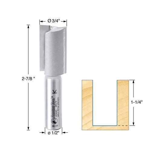 Amana Tool 45440 Straight Plunge 3/4-Inch Diameter by 1-1/4-Inch Cutting Height by 1/2-Inch Shank Carbide Tipped Router Bit