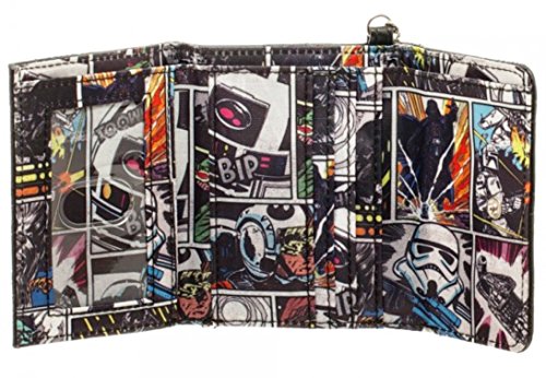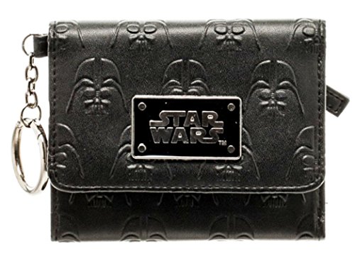 -. Brand : Main Street 24/7 -. Color : black -. Department : unisex-adult -. Feature : Star Wars DARTH VADER Embossed Black Tri-Fold WALLET / Inside of wallet features ID window, billfold and multiple card slots / Zippered outside coin holder / Front has a Metal w/ Enamel Finish Star Wars Logo -. PackageQuantity : 1 -. ProductGroup : Single Detail Page Misc -. ProductTypeName : MISC_OTHER -. Size : 3" x 4" folded -. Title : Star Wars DARTH VADER Embossed Black Tri-Fold WALLET