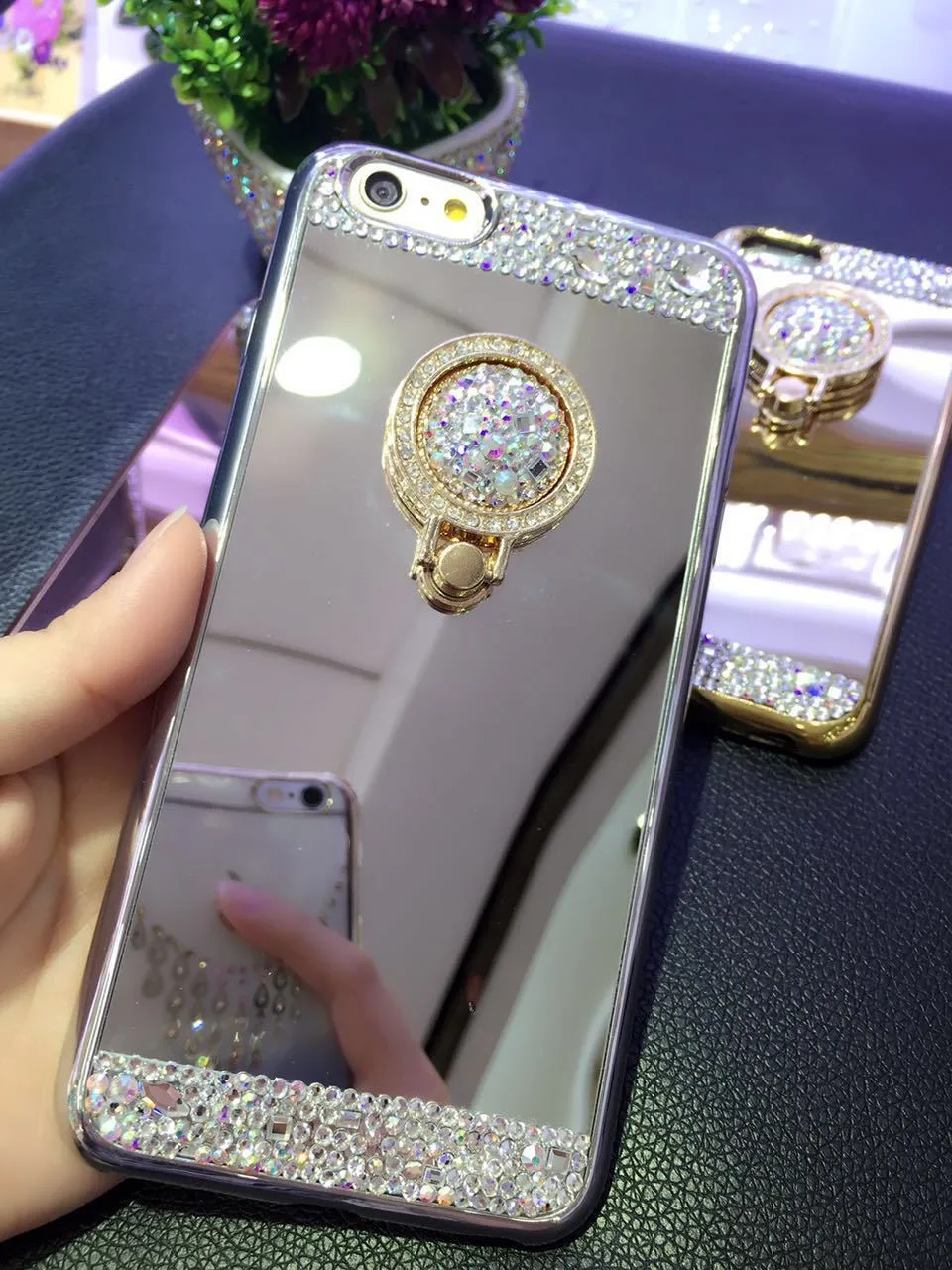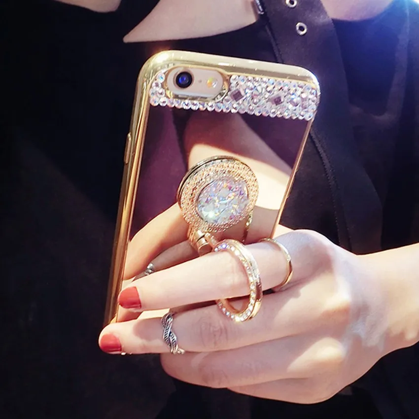 Feature four:for iphone 7 cases for women diamant spiegel case telefoon ring stand