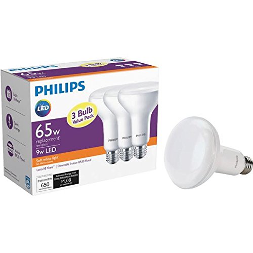 65 WATT REPLACEMENT BULB: This Philips BR30 LED bulb turns on at full brightness with 650 lumens and replaces a traditional 65 Watt incandescent bulb