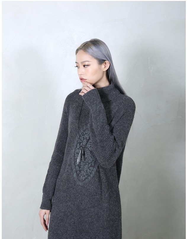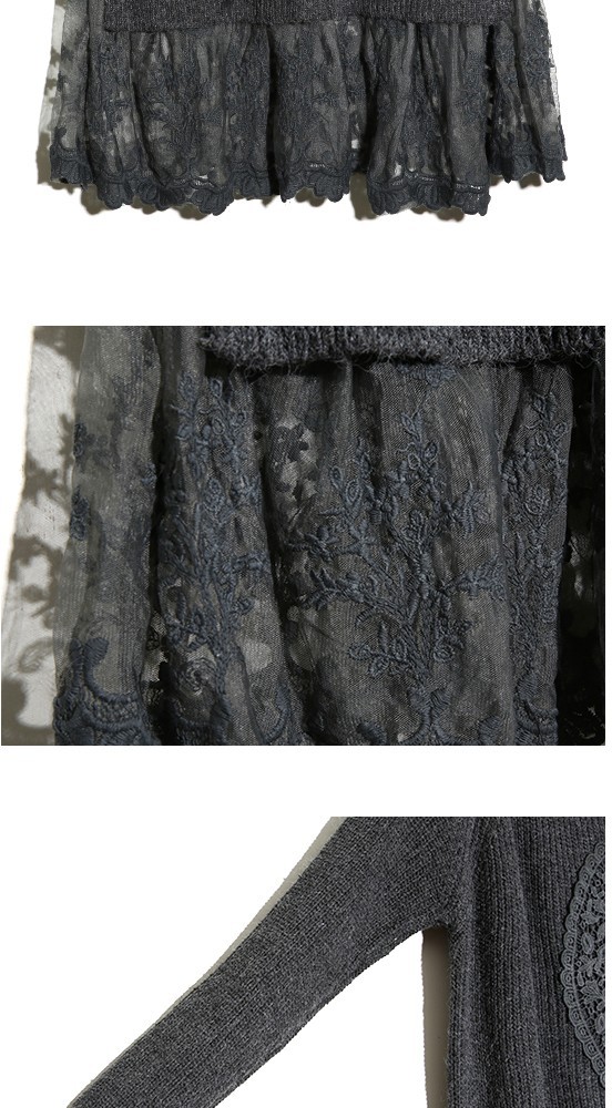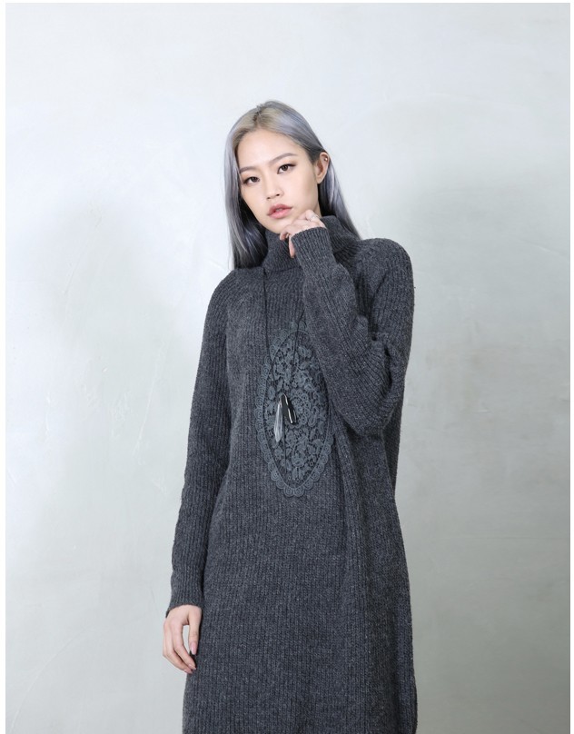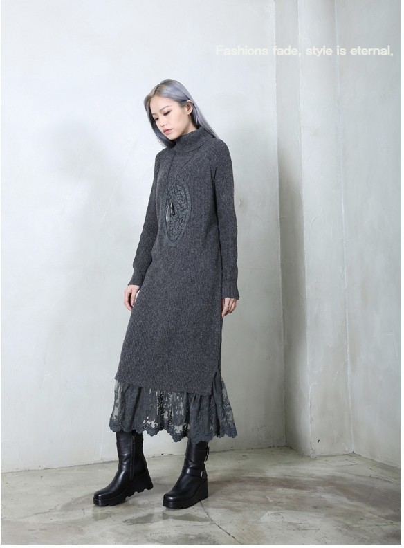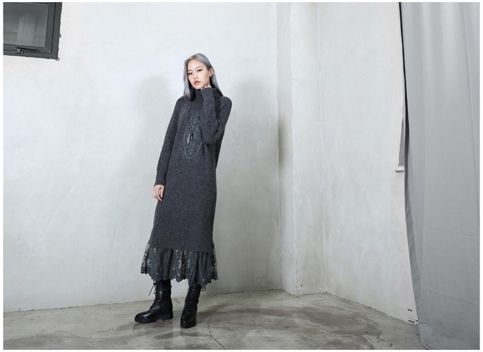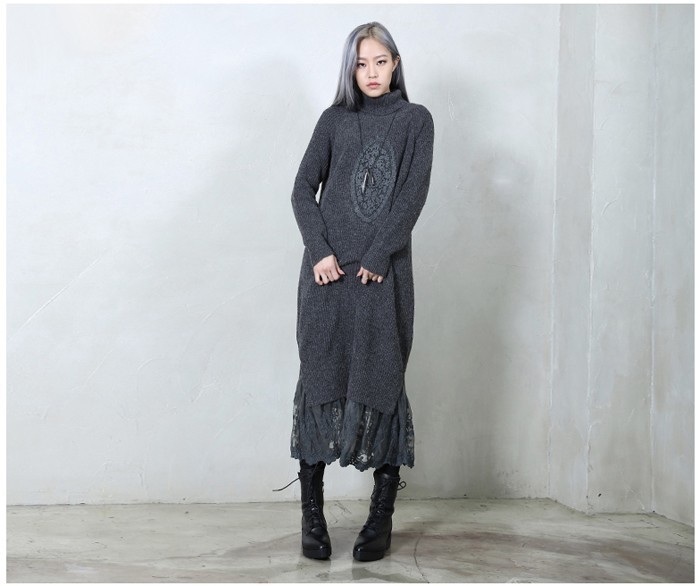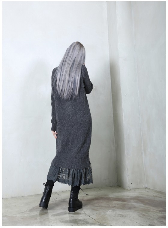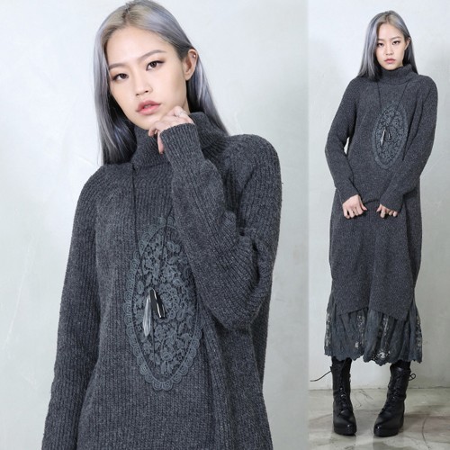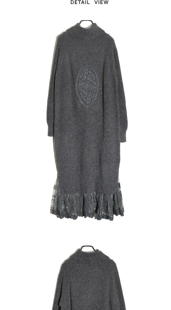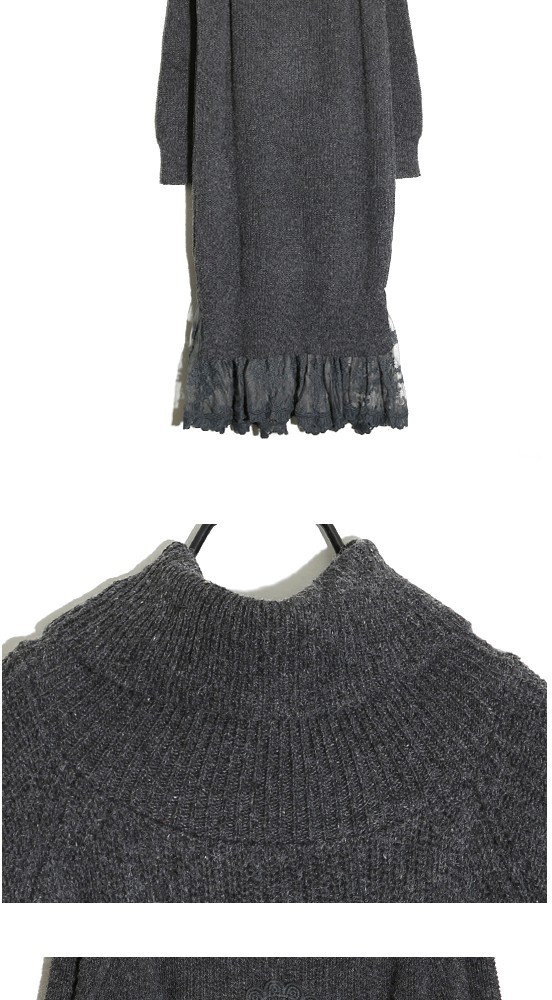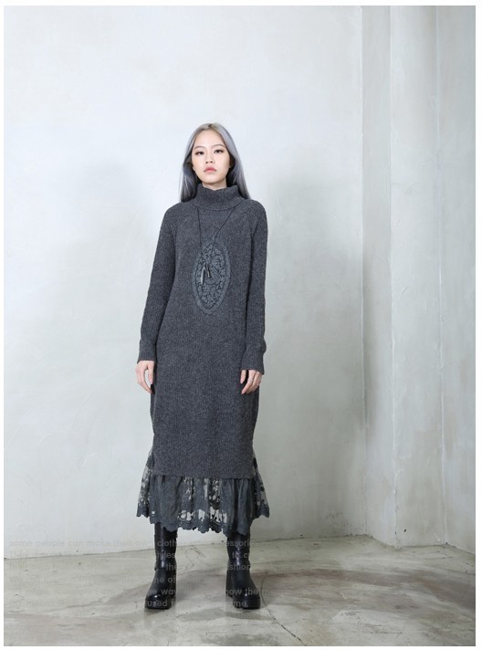商品名:ワンピース レディース ニットワンピ レース配色 ロング丈 タートルネック 秋 冬 2017 モード系 個性的 40代 ファッション
