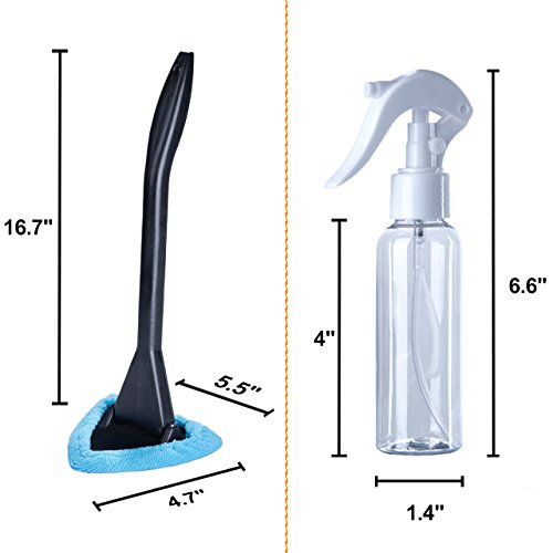 -. Feature : 🎅PERFECT VEHICLE CLEANING KIT 5 PACK: including 1Pc long extension handle windshield cleaner with pivoting head, 2Pcs removable washable microfiber bonnet, 1Pc microfiber cloth and 1Pc spray bottle, also have one canvas storage bag as a free gift.🎁 / 🎅MULTI USE, NOT ONLY FOR CAR: 13.5" ergonomic handle with pivoting head can be used both in your car and your house, effectively clean the windshield, bodywork and window. Triangle design is perfect for all corners.🎁 / 🎅P.R.IME COOPERATION: Also we provide two spare microfiber covers. The spray bottle and 30*30cm microfiber cloth bring more useful situation for your car and house use. All of the kit can be stored in a bag which makes it easy to storage in your car when you don't use.🎁 / 🎅WON'T SCRATCH YOUR VEHICLES: the auto cleaning tools are made from fine material to be soft, sturdy and durable, that will not damage your precious cars. Microfiber material will not leave link or fragment after cleaning.🎁 / 🎅KEEP CAR SHINY: The tools are specially designed for easy use, convenient for you to hold and clean your car thoroughly, for car surface, leather car seat, windshield, hood, doors, windows and ect.. Keeping your car, truck, auto, van and motorcycle clean and shiny all the time!🎁