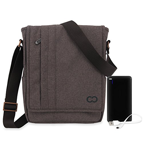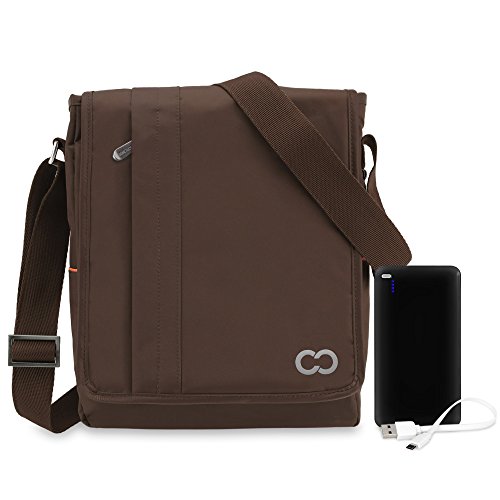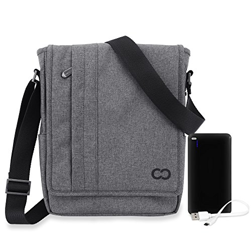 CaseCrown Messenger Bag with 10000mAh Powerbank Micro USB Cable The Messenger Bag is a stylish bag with durable construction to protect your belongings. Inside, there is a main padded divider that will secure your device with an elastic band and velcro closure. Multiple pockets with zippered and velcro closures will keep all of your valuables safely inside. The attached adjustable shoulder strap offers convenient mobility. Perfect for travel, school, or work, the Messenger Bag will satisfy all of your carrying needs. Approximate Bag Dimensions: - Exterior: 9.5 x 12 x 3.25 inches (24.1 x 30.5 x 8.3 cm) - Interior: 9.25 x 11.75 x 3 inches (23.5 x 29.8 x 7.6 cm) - Padded Compartment: 8 x 11.75 x 1.3 inches (20.3 x 29.8 x 3.3 cm)