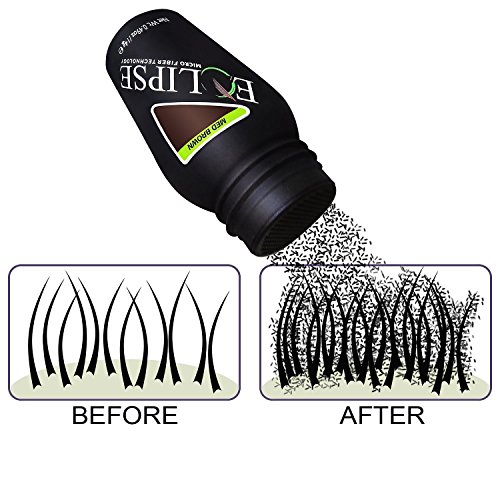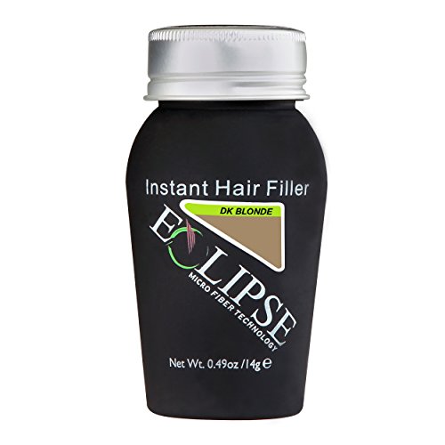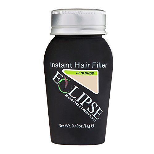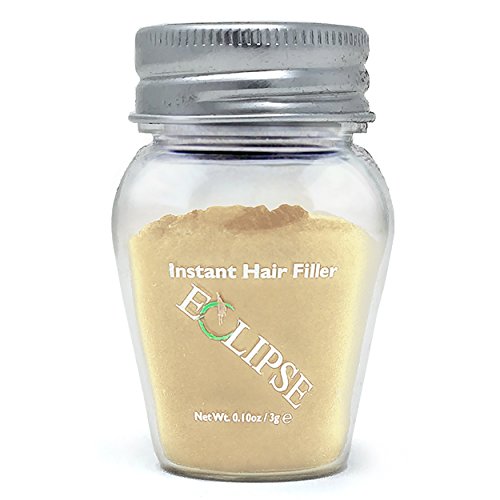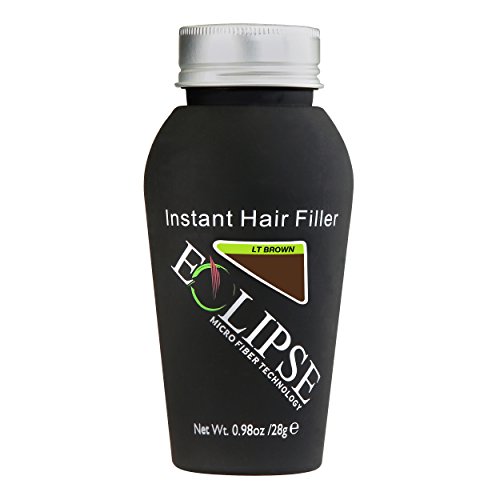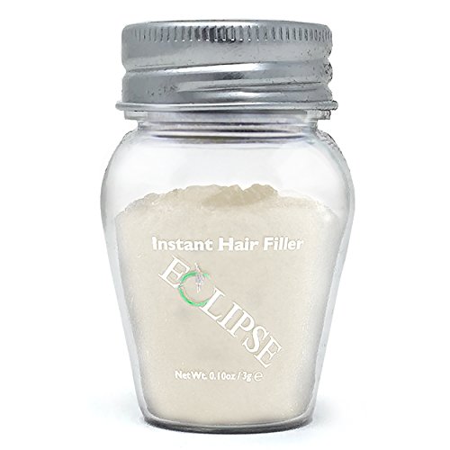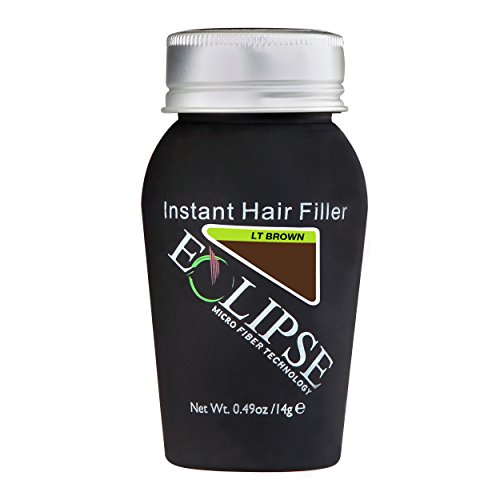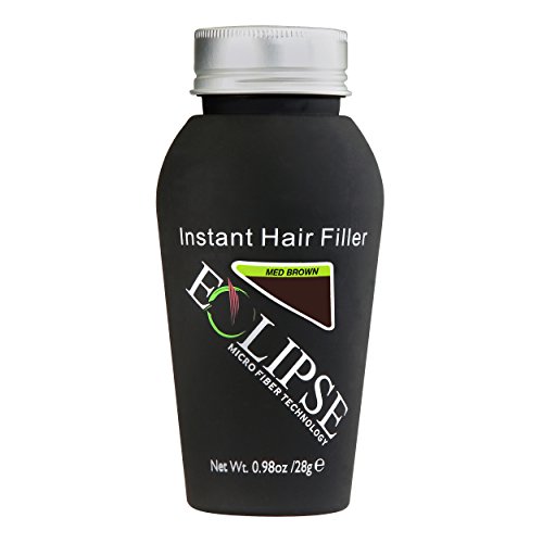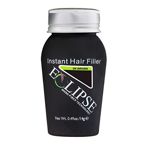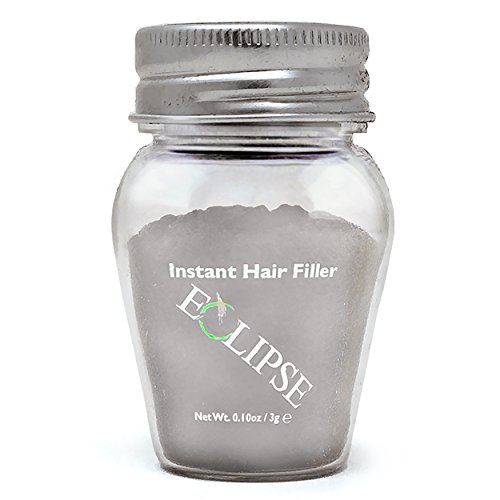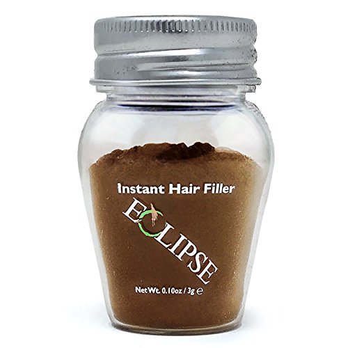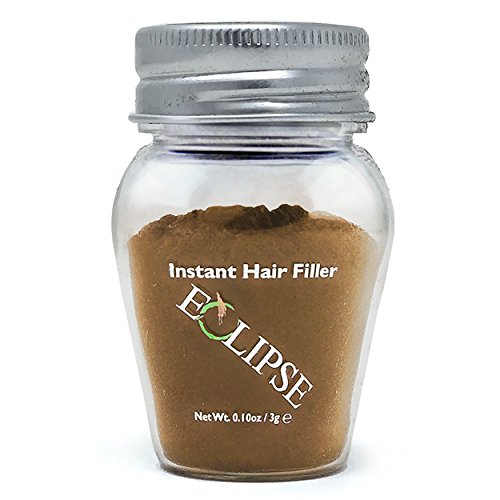 Eclipse Hair Filler for Women & Men to Conceal Thinning Hair or Balding Area. Eclipse Hair Building Fibers for Women & Men is the 30 Second Solution to Conceal Thinning Hair or Balding Areas. The Colored Fibers blend undetectable into existing hair to give the appearance of Thicker, Fuller hair instantly. For both Women and Men Wind, Rain and Sweat Resistant Uses the Latest Hair Fiber Technology For All Hair Types and TexturesFeature