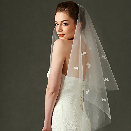 (Ruolai)/Accessories/Scarves/DIRECT FROM USA/Ruolai Simple Wedding Veil With Little Bow Elegant Veil For Brides