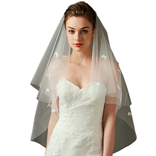 One Piece Simple Two-tier Wedding veil with little bows decorated.