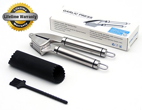 Cooking Lovers - You've Found a Top Quality Garlic Press! These utensils are built using the highest quality materials: solid food grade stainless steel for the press with lifetime guarantee. If you are looking for tools that will last a lifetime, you've found them. Add delicious, fresh minced or sliced garlic to all you meals in seconds. Once you discover how quickly and easily you can produce you own fresh garlic mince you'll be adding to everything. Home made garlic bread, rich pasta sauce, mouthwatering hummus, oven roast veggies, mashed potatoes. The options are only limited by your imagination! A perfect birthday or holiday gift for any men or women who deserve new cooking experiences! You risk absolutely nothing. The Garlic Press Peeler Set is backed by an unconditional 100% lifetime money back guarantee. Don't settle for anything less. Click the 'Add To Cart' button now and get ready for your new cooking experiences today! 0 |