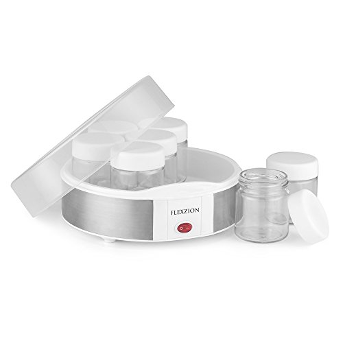 Flexzion Maker Machine with 7 Yogurt Containers Glass Jars - Automatic Electric Easy Yogurt Maker Machine