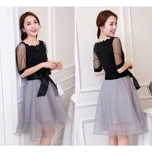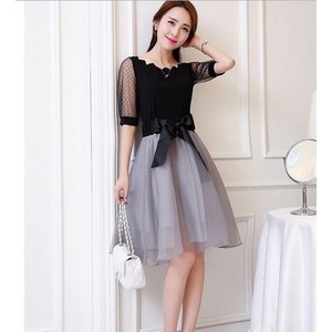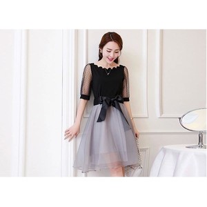 パーティードレス ひざ丈 ワンピース スカラップ ウエストリボン シースルー 透け感 大人 上品 可愛い お呼ばれ drgz2655