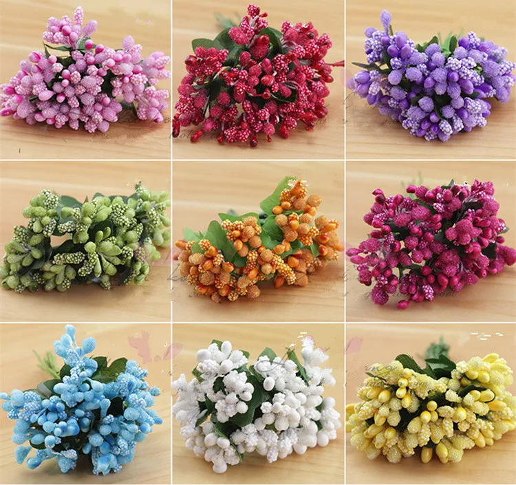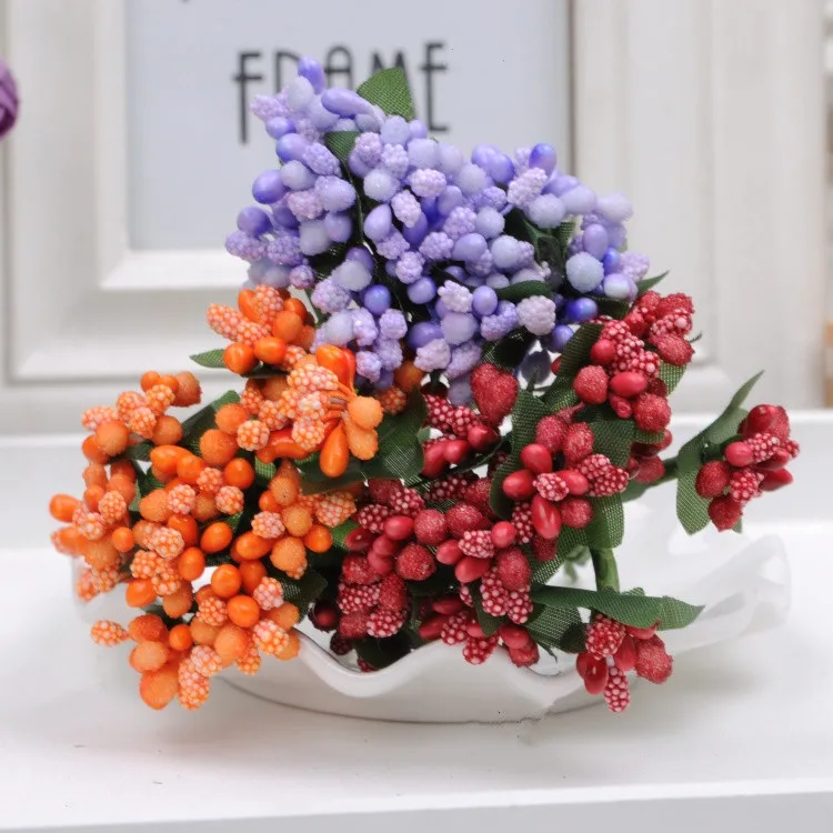 12pcs/lot Multicolor Mulberry artificial flowers garland wedding flowers bridal bouquets Stamen wire stem party supplies