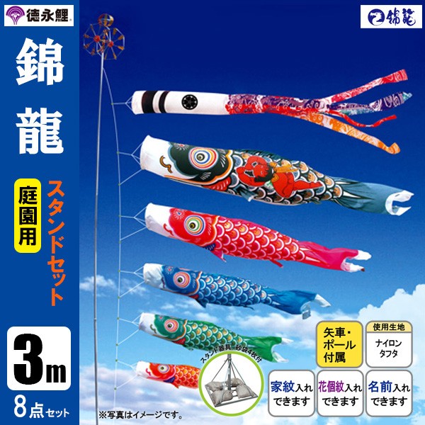 | 錦龍鯉 庭園用大型鯉のぼり スタンド砂袋式ポール付セット | 1.5m鯉3匹 | 2m鯉3匹 | 3m鯉3匹 3m鯉4匹 3m鯉5匹 | 4m鯉3匹 4m鯉4匹 4m鯉5匹 |