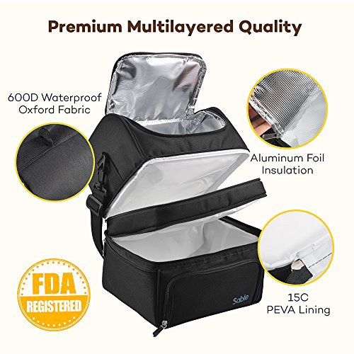 Lunch Box, Insulated Lunch Bag for Men & Women, FDA Registered Reusable Waterproof Large Cooler, Tote Bag for Meal Prep with 3 Main Spacious Compartments by Sable