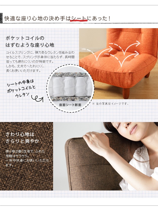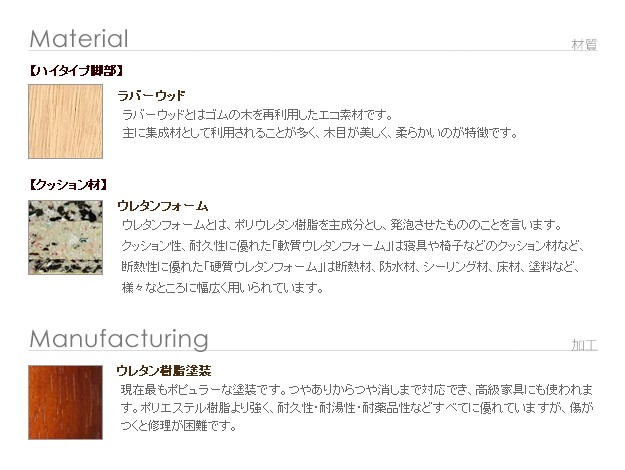 材質:張地-ポリエステル100%、クッション材-ウレタンフォーム、脚部-天然木(ラバーウッド)・樹脂