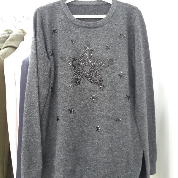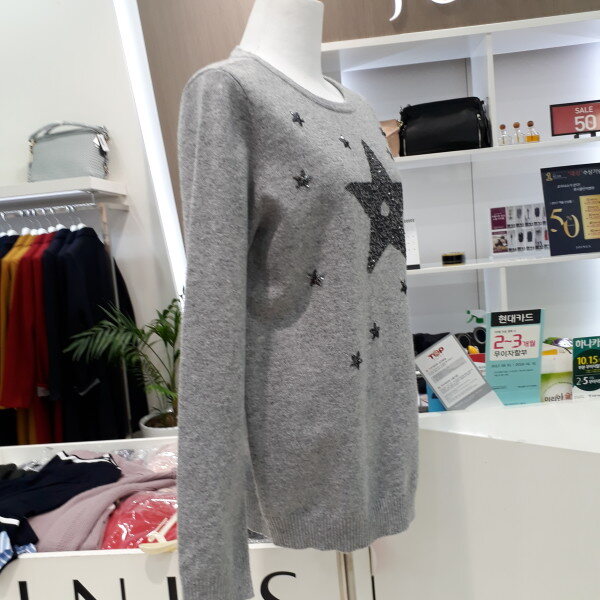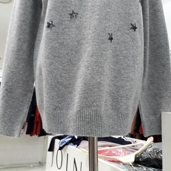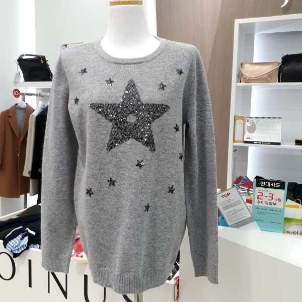 앙고라와 모소재 함유로 가볍고 따뜻한 니트 티셔츠 입니다,스팽글 장식이 화사합니다,
