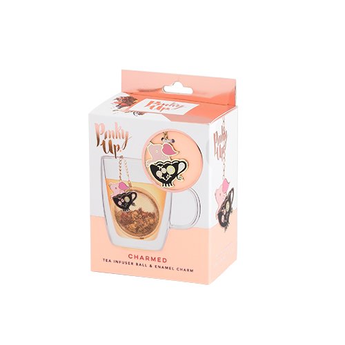 Studio : Pinky Up Publisher : Pinky Up Binding : Kitchen Product Description Keeping your tea ball chain from falling in your cup is a piece of cake with the charmed tea ball. The enamel charm not only decorates your cup, but provides a counterweight to your infuser!. 0