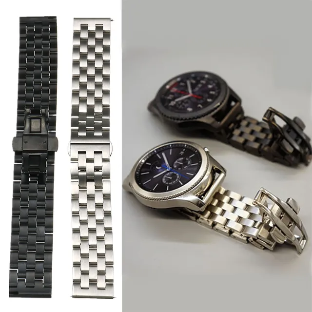 | [해외] 22 미리메터 스테인레스 스틸 시계 밴드 숨기기 버클 손목 스트랩 남성 실버 블랙 솔리드 링크 팔찌 교체/기어 S3 |