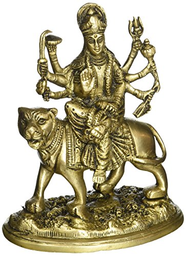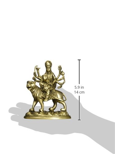 -. Feature : Hindu goddess durga statue in brass / Size: Height - 5.75 inches, Length - 4.5 inches, Width - 2.75 inches / Weight: 1.2 KG / Made with sand casting technique / Crafted in India