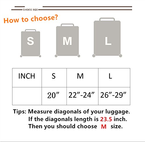 -. Brand : SINOKAL -. Department : unisex-adult (lage only) -. Feature : Made of high quality fabric : It is made of 95% Polyester and 5% Spandex .The Fabric is very soft and flexible ,thick. It is not easy to fold and color fading. Different from others cheaper cover. / Perfect and Unique Design: The Unique design can help you identify your lage quickly and easily; the perfect design can fit your lage perfectly ,easy to get on and off, Zipping on the bottom. / What can cover help you: It can help protect your valuable lage from gouges and scratches and the product itself is washable .THESE ARE VERY IMPORTANT. / Four size design: S: 20 inch , M: 22-24 inch ,L: 26-29 inch. Other size, please go into the store. / About us : We are the professional Travel Accessories product Producer. More product want to get ,please get into our SINOKAL Store to find the best thing you want. -. Label : SINOKAL -. Manufacturer : SINOKAL -. PackageQuantity : 1 -. ProductGroup : Apparel -. ProductTypeName : LAGE -. Publisher : SINOKAL -. Studio : SINOKAL -. Title : SINOKAL Elastic 20 22-24 26-29 inch Lage Cover Suitcase Cover Protector(Cover Only Not Lage)