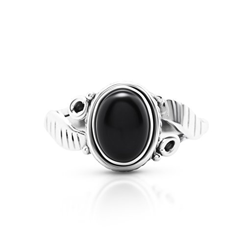 -. Title : Black Onyx Feather Sides Ring 925 Sterling Silver Vintage Tribal Gipsy Boho US Size 6 7 8 9