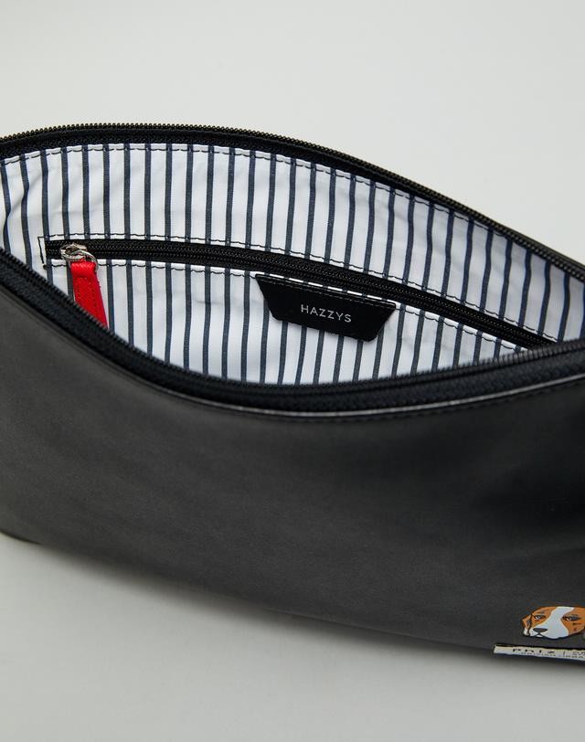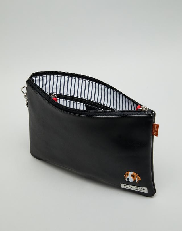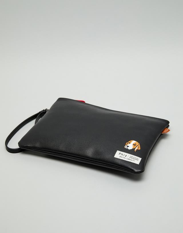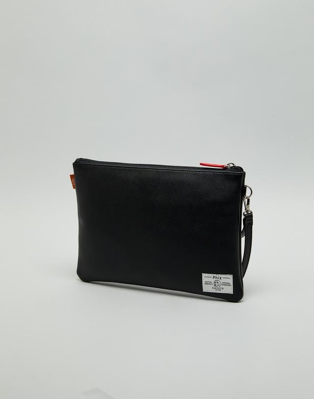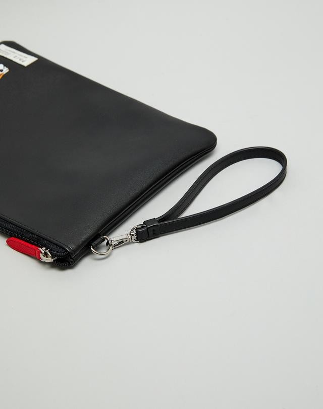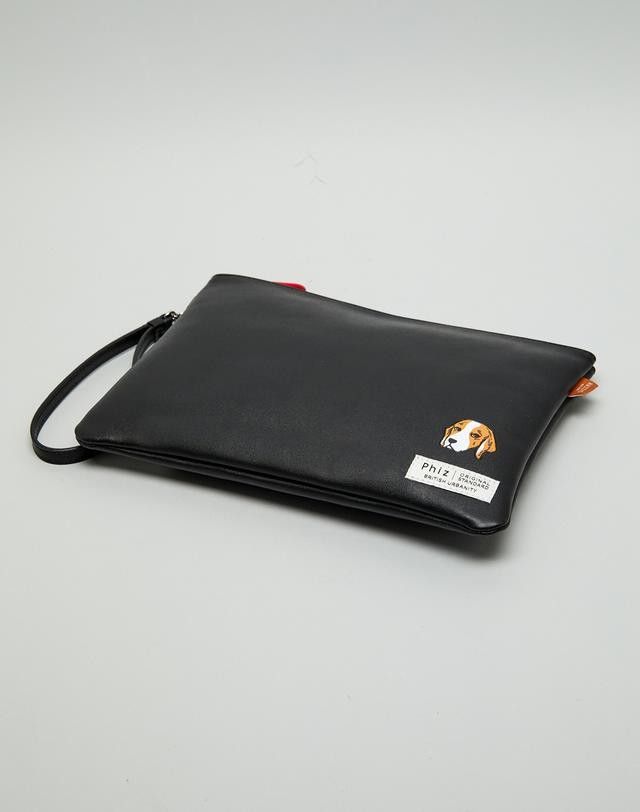 심플한 블랙 가죽 디자인에 부분 배색과 헤지스만의 피즈로고로 포인트를 주었고 핸드 스트랩이 있어 실용적입니다.